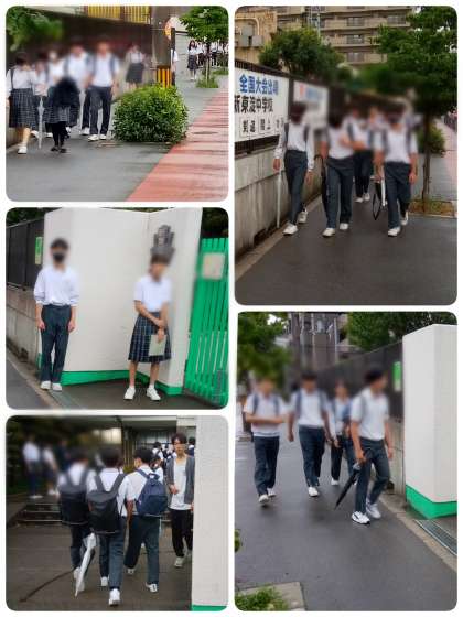 ちょうど登校の時間帯は雨があがっていたので、傘をさしている人はほとんといませんでした。