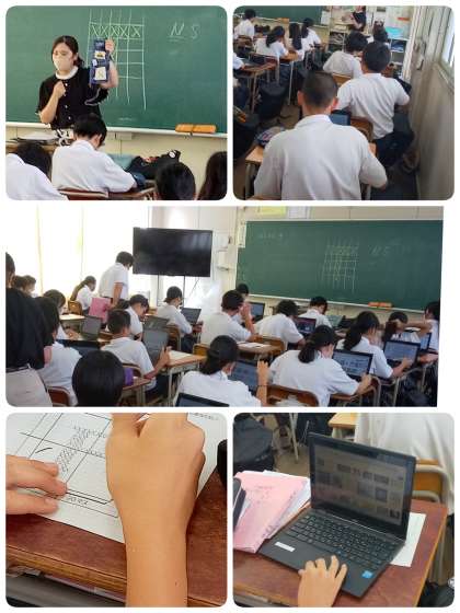 2学期に作成する「クロスステッチ」のデザインを考える授業でした。