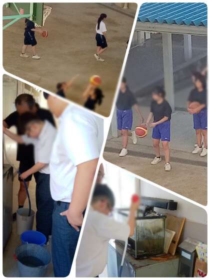 理科部員の皆さん、職員室前水槽の清掃、いつもありがとうございます。