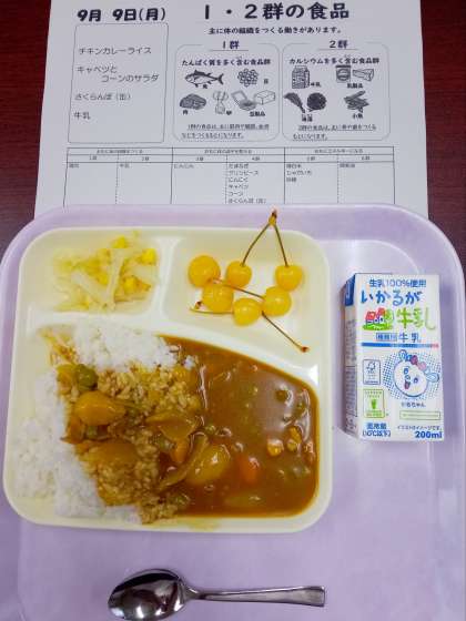 どちらも同じ食材、レシピで作っていただいているのですが、今日の「カレーライス」のような献立だと、違いが分かりやすかったりしますね。