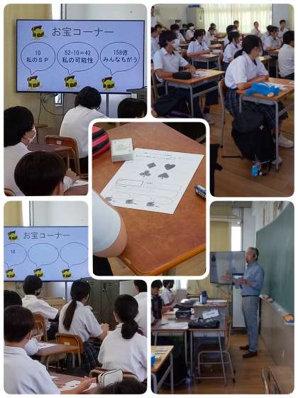 本日1〜3時間目、2年生の前半クラスで「キャリア教育」の一環として「SPトランプ」を体験しました。
