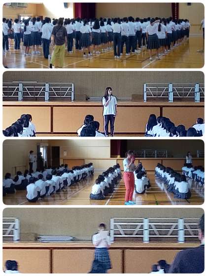 集会では、先生の生徒時代の体験にもとづく反省から、皆さんの今の生活を見つめ直そうというお話がありました。