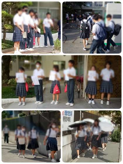 登校の時間帯に日差しが強くなってきたので、日傘をさして登校する生徒の集団も見られました。