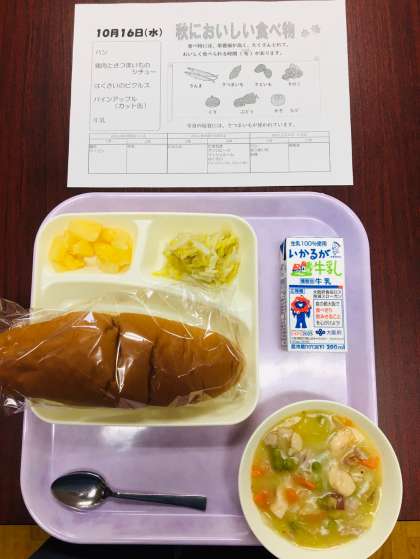 今日の献立には「さつまいものシチュー」が出ますが、「さつまいも」は秋が旬(しゅん)の食べ物です。