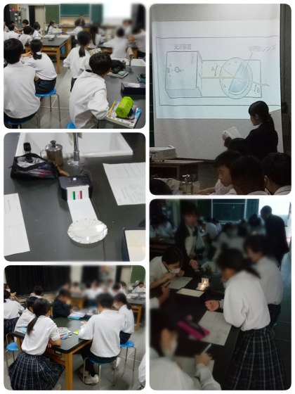 上は5時間目の1年生理科の授業で、光源装置を使って測定しながら、「光の進み方」について学びました。