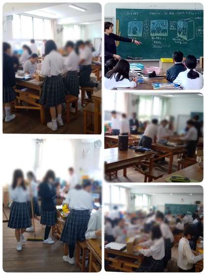 今日の授業は、文化発表会で展示した「BOXART(ボックスアート)」の完成度を高める作業を行いました。