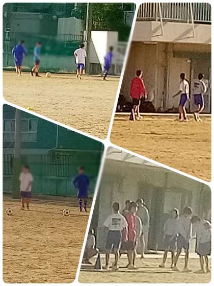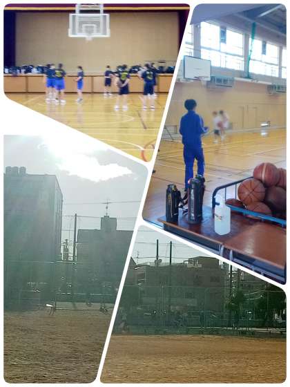 写真は、陸上部、サッカー部、テニス部、バスケットボール部の活動の様子です。