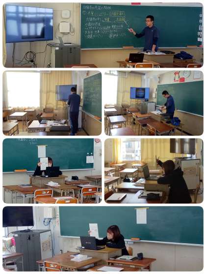 3-2では理科、3-3では英語科の授業をリモートにて実施しています。