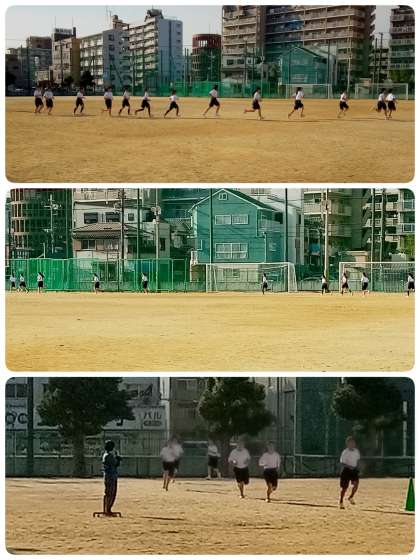中……1年生女子の保健体育科の授業で、グラウンドにて長距離走