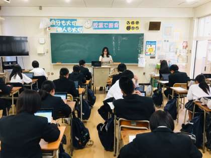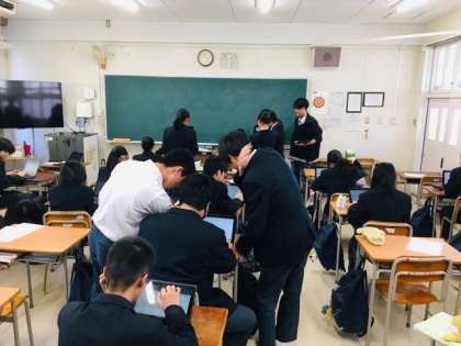 6時間目、3年生ではタブレットPCを使いながら「卒業文集」の制作を行なっています。