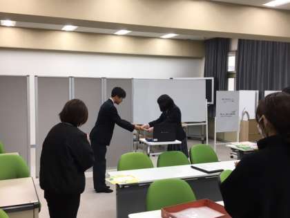 おはようございます。第2多目的室にて、オンラインの集会が行われました。まず、3年生「税の作文」の表彰と生徒会の取組として「プリーズユアブック」の表彰がありました。次に校長先生からの講話では、2学期を振り返って頑張って生活できた人もそうでなかった人も、残りの1週間を大切に過ごしましょうとの話がありました。最後に生活委員から先週の遅刻者の人数が報告されました。