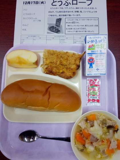 「とうふローフ」とは、ツナ、とうふ、大豆、たまねぎ、でん粉を混ぜ合わせ、味付けして焼いた料理で、お肉やお魚じゃない、軽くて、でもメインになるようなおかずです。