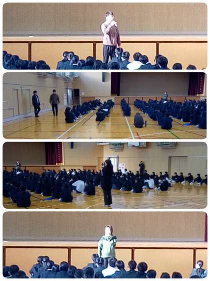 本日体育館にて、1年生学年集会を実施しました。