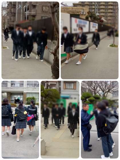 リモートによる全校集会でしたので、(体育館への移動がない分)比較的時間に余裕のある登校風景だったと思います。