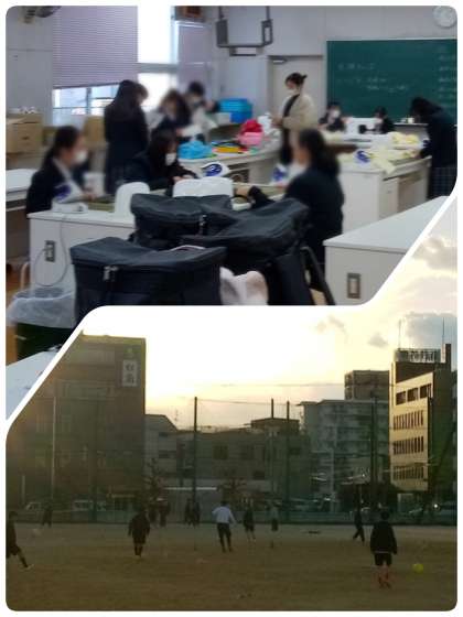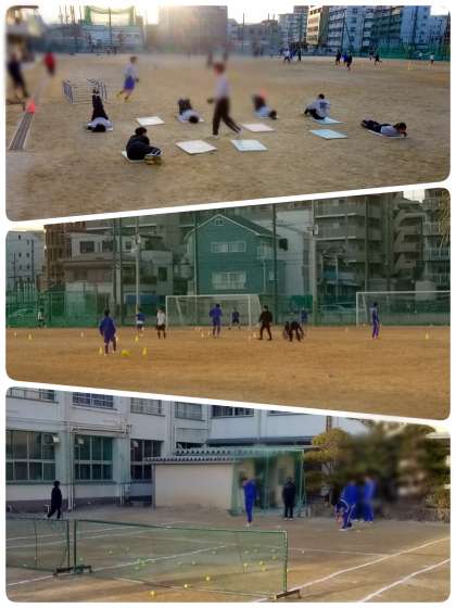 今日は陸上部、サッカー部、ラグビー部はグラウンドで、テニス部は中庭で活動しました。