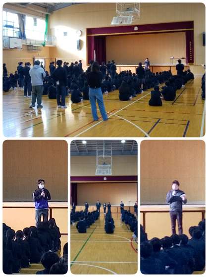 また、来週の学年末テストに向けて「非日常を日常に」ということで、行事だけでなく提出物等も含め、普段の行いを大切にしようとお話がありました。