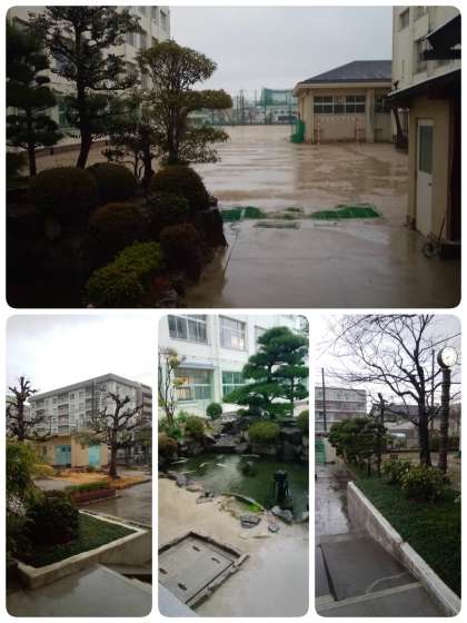 今朝は厚い雲で空が暗く、雨が降っていて風も吹いています。