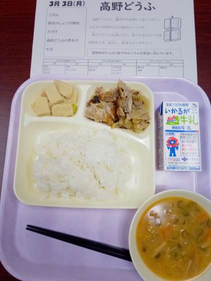 高野山で製法が完成された凍り豆腐(こおりどうふ)が、精進料理の一つとして日本全国に広まったという説や、東北地方にも凍み豆腐(しみどうふ)という保存食として、、戦国大名伊達政宗が、兵糧研究の末に開発したという説があるそうです。
