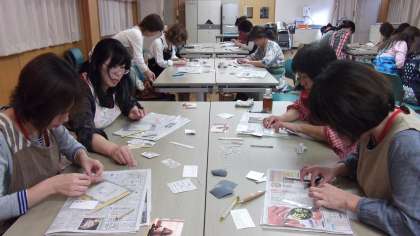 当日は、「ゆう工房」の先生方のご指導により、銀粘土をひねって、好みの形に成型し、窯で焼きあげて、世界に一つしかない、オリジナルのアクセサリーが完成しました。
