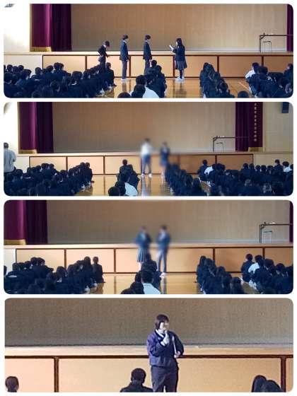 また、各学級代表からクラス毎にとった学校生活に関する意識調査(3学期)についての結果、分析、展望の発表がありました。