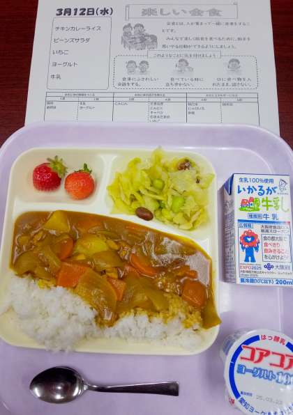 3年生はもう給食がありませんので、今日からは1・2年生だけでの給食になります。