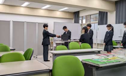 次に生徒会より、PGB(あなたが不要になった本を学校へ寄付してください)の取り組みについての表彰がありました。