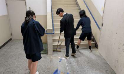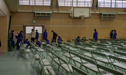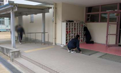 明日の入学式の準備として、新2年生は校舎内の掃除、新3年生は体育館の準備をしてくれました。