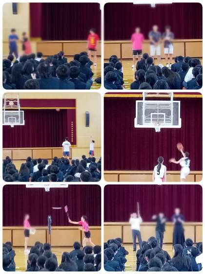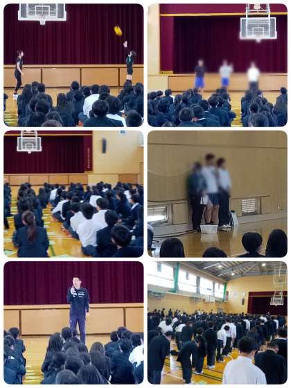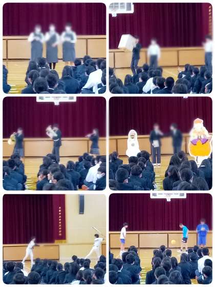 今日の部活動紹介は、家庭科部、理科部、吹奏楽部、美術部、野球部、サッカー部、ラグビー部、硬式テニス部、男子バスケットボール部、女子バスケットボール部、剣道部、バドミントン部、バレーボール部、陸上部の順に行われました。