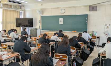 先日行われた、理科のオンライン調査に続いて、本日、1時間目の国語と2時間目の数学が、紙面による筆記調査の形で行われています。