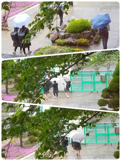 傘を持ってきていない人は、お友だちに入れてもらったり、濡れながらも急いで帰ったりしていました。
