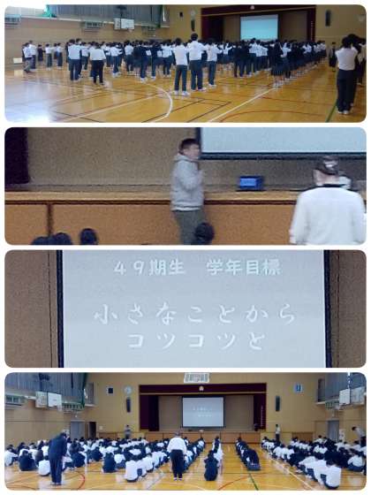 集会では、学年委員会で話し合われた49期生の学年目標が、可視化した上で確認されました。