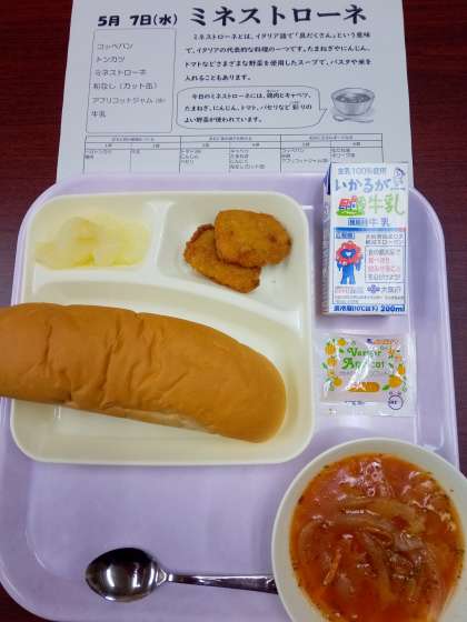 今日は「ミネストローネ」が出ましたが、「ミネストローネ」とは、イタリアの野菜スープのことです。