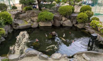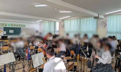 (画像は上から、吹奏楽部、憩いの鯉の池です)