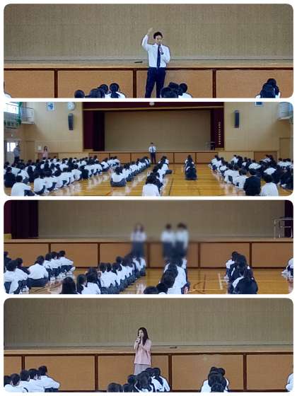 本日体育館にて、1年生学年集会を行いました。