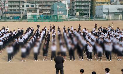 (画像は上から、全校集会、1年生、2年生の様子です)