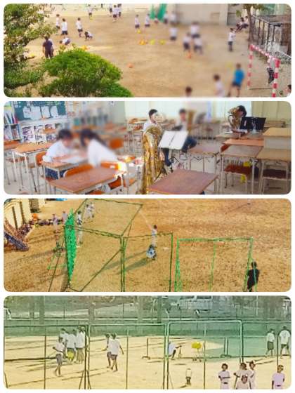 写真はサッカー部、吹奏楽部、野球部、テニス部です。
