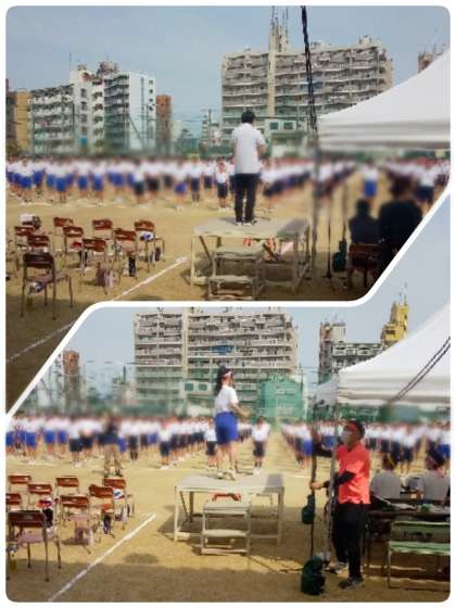 学校長あいさつの後、PTA会長にごあいさついただき、体育委員からルール説明等がありました。