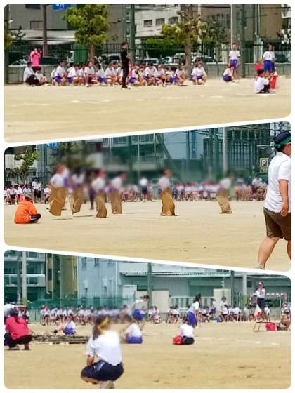 袋に入ってジャンプ、フラフープくぐり、ネットの通り抜けを通過してからのゴールとなります。