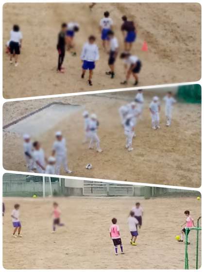写真は陸上競技部、野球部、サッカー部の様子です。