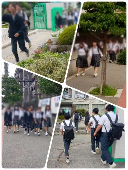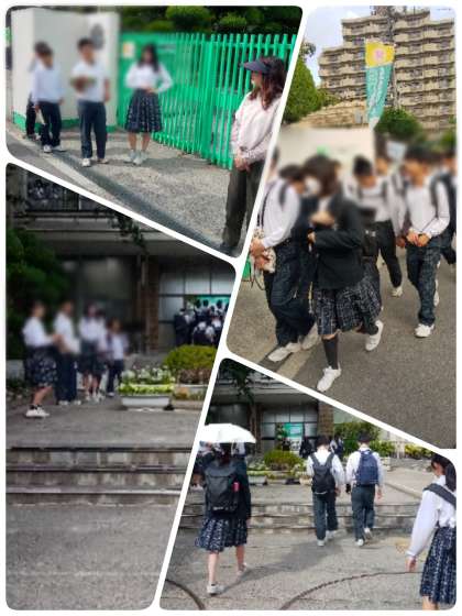 日傘をさしてる人、ブレザー着用の人、ポロシャツ長袖の人、半袖の人と、今日は様々な服装が混在する登校時間でした。