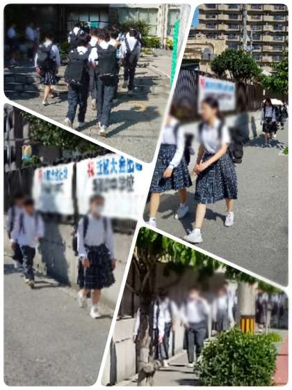 今朝の登校時間帯は日差しも強く、日傘をさして登校する生徒も少なくなかったです。