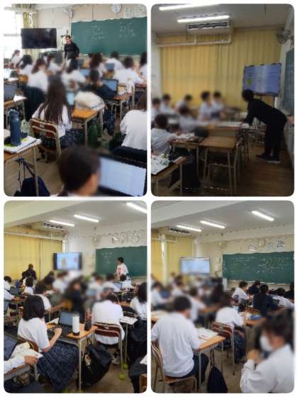 男女保健体育科(保健)、技術科、家庭科の授業でしたが、どの学級でも学習者用端末が活用されていました。