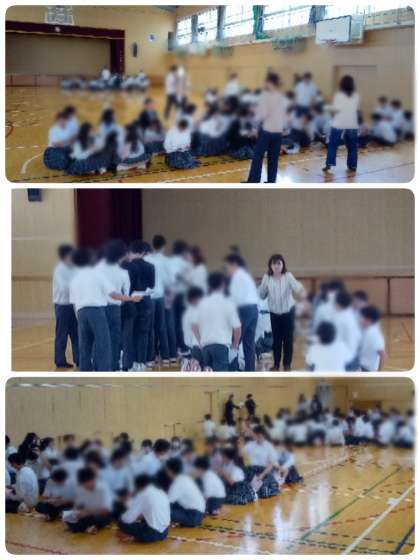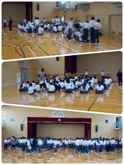 修学旅行に向けてしおりが配られ、それをもとにバス、各部屋、選択別体験ごとに並んだりして、当日をイメージして集まったりする練習を行いました。