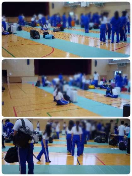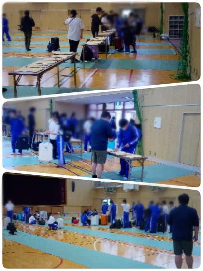 財布と名札を交換して、シートの上に荷物をおいてクラス毎に並びます。