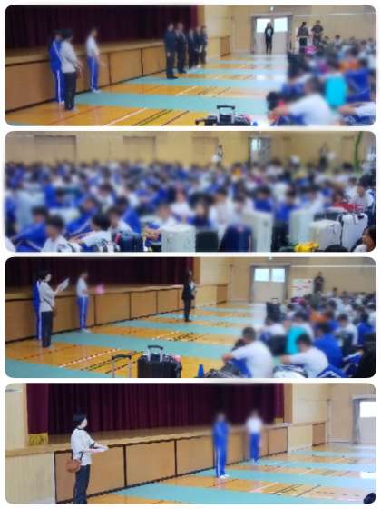 添乗員さん、看護師さん、写真屋さんの紹介のあと、「行ってよかったと思える修学旅行にしましょう!」と、係生徒から団結の声かけがありました。