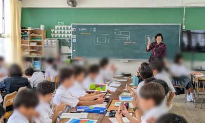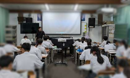 天気は梅雨空です。1、2年生は、本日最後の授業に取り組んでいます。