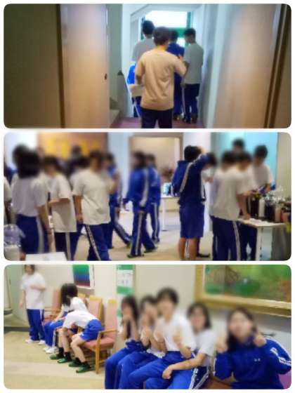 朝の準備ができたら、クラス順に2階大広間前へ集合です。