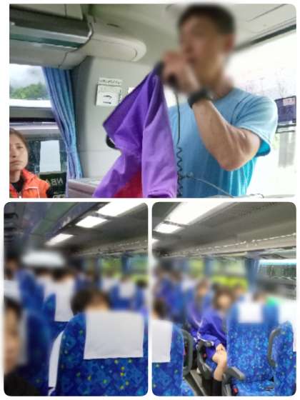 インストラクターさんが、バス内で準備について説明してくださいました。