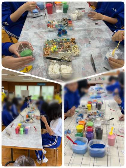創作体験のうち、パンづくり、ジェルキャンドルづくりの様子です。