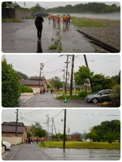 ラフティング体験が終わり、川から上がったらバスに移動しました。